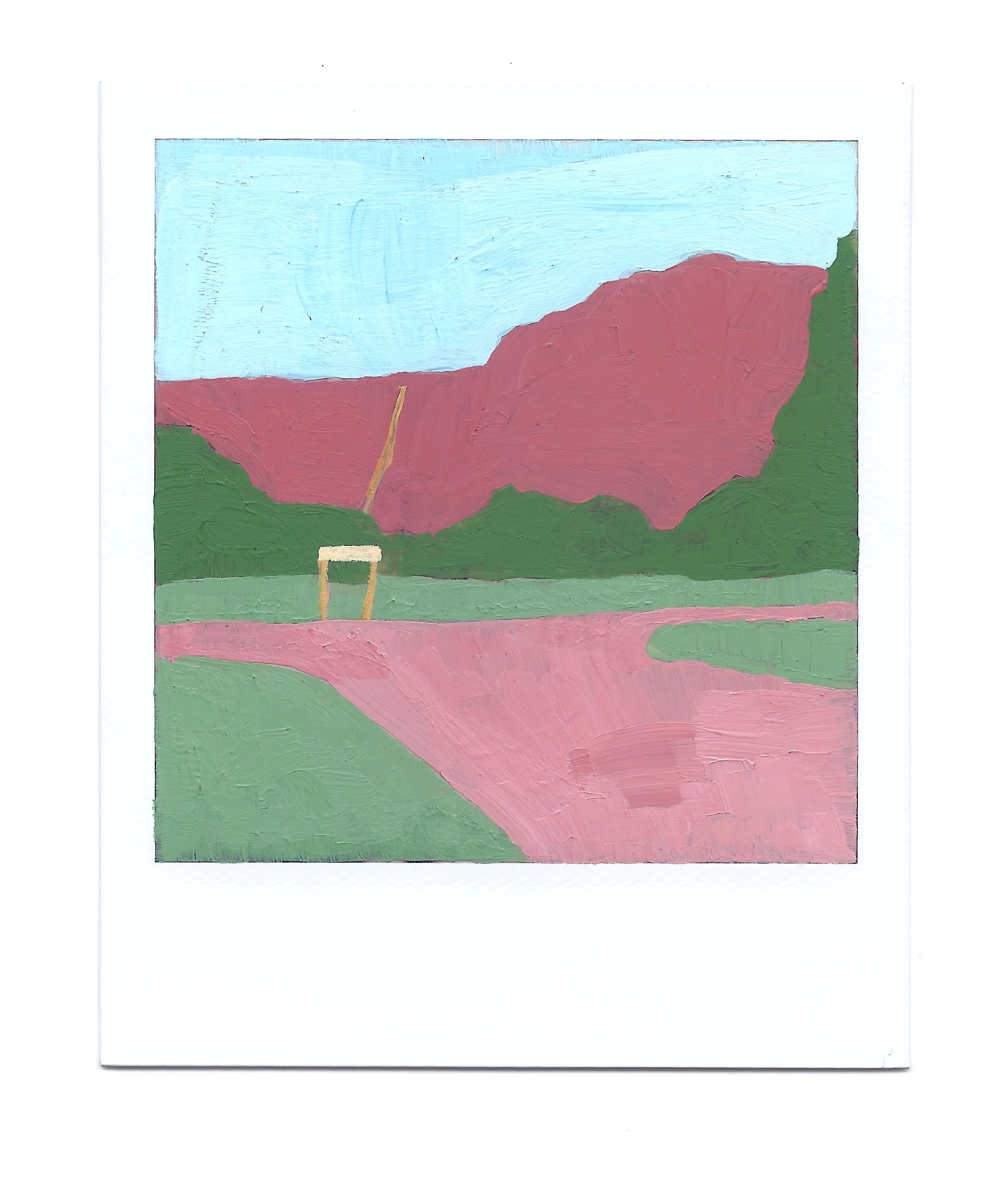The Pipeline (Toowoomba) 2018-2020, acrylic on polaroid photograph, mounted on Tasmanian Oak, 9 x 11cm